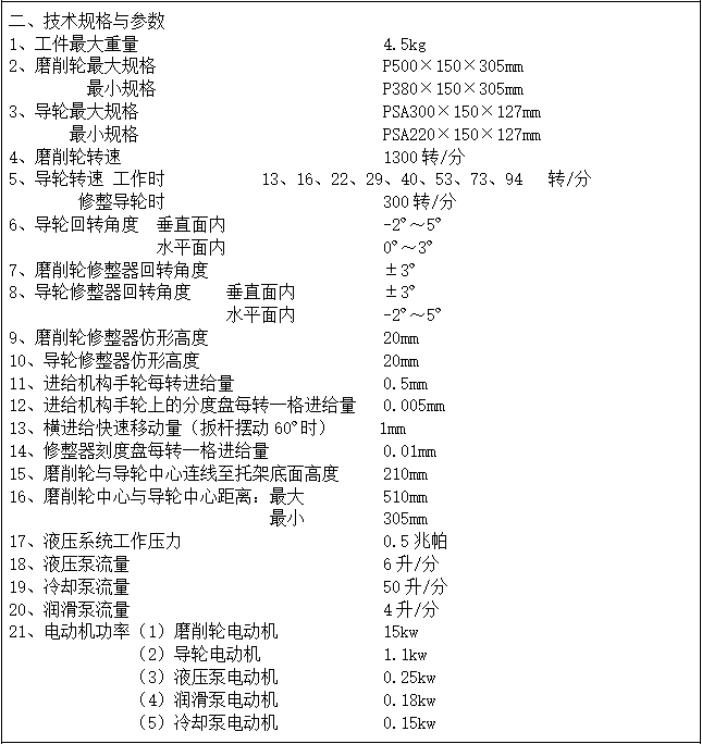 縱進(jìn)給托架(磨φ5~φ80mm)、砂輪吊鉤、冷卻裝置、專用工具各一套