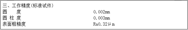 設(shè)備驗(yàn)收時(shí),根據(jù)實(shí)際生產(chǎn)情況,雙方協(xié)商選用其它產(chǎn)品型號(hào)作為驗(yàn)收型號(hào),以產(chǎn)品磨削精度來驗(yàn)證設(shè)備加工精度,及對(duì)“主要技術(shù)參數(shù)”中的內(nèi)容進(jìn)行驗(yàn)收