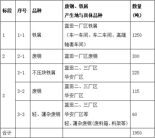 (三)項目內(nèi)容:福建龍溪軸承(集團(tuán))股份有限公司鐵屑、廢鋼等生產(chǎn)性廢料出售,總量約1950噸。