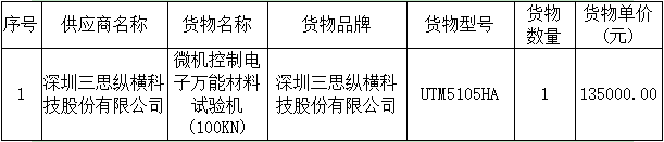 微機控制電子萬能材料試驗機(100KN)采購與安裝中標公告